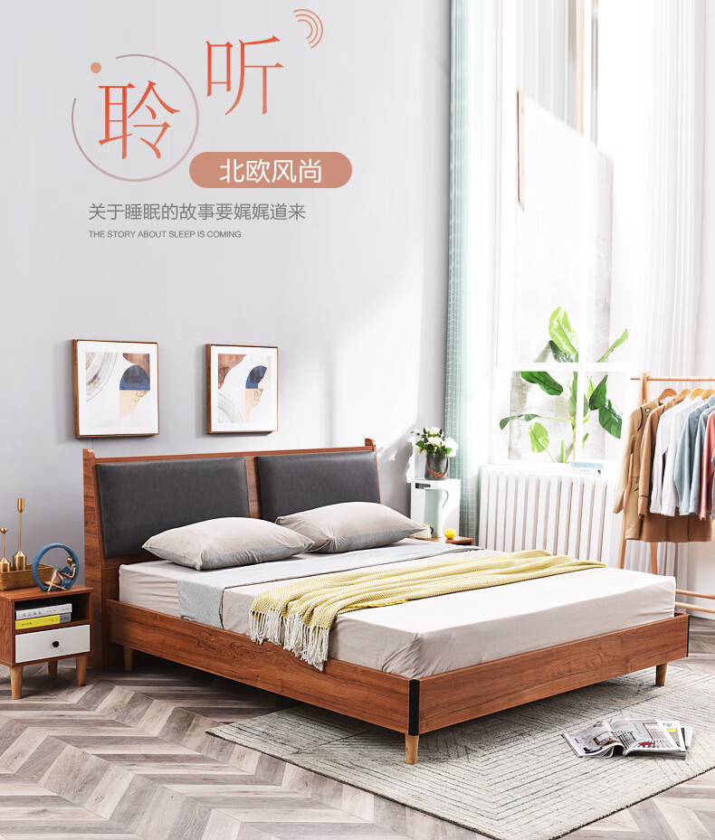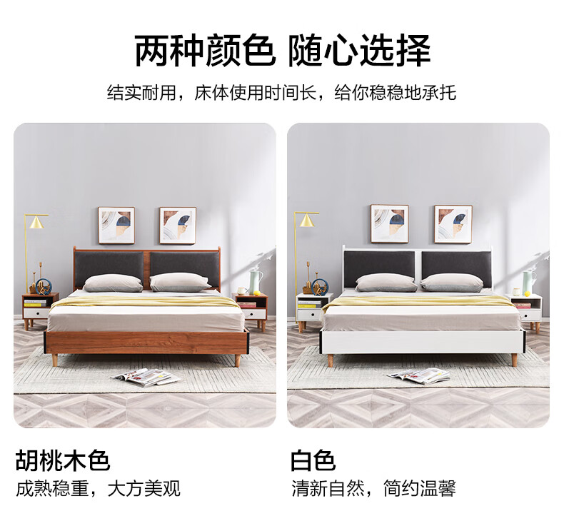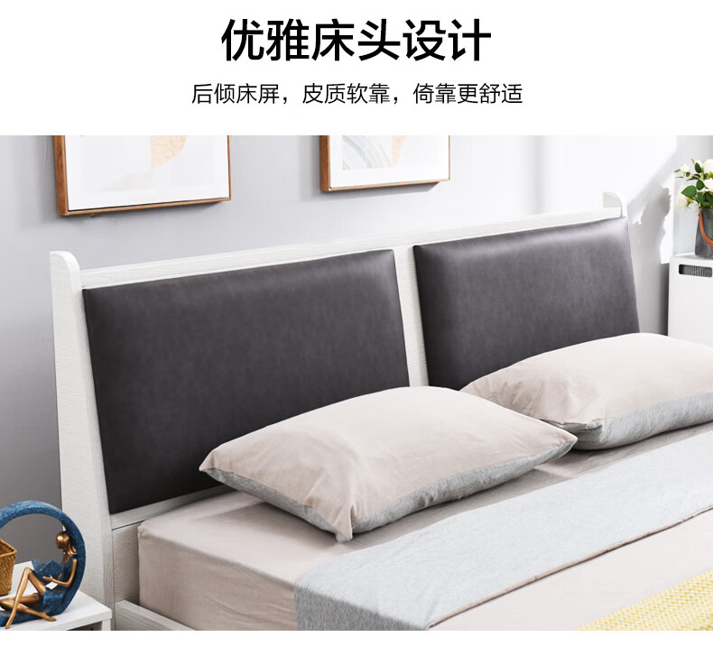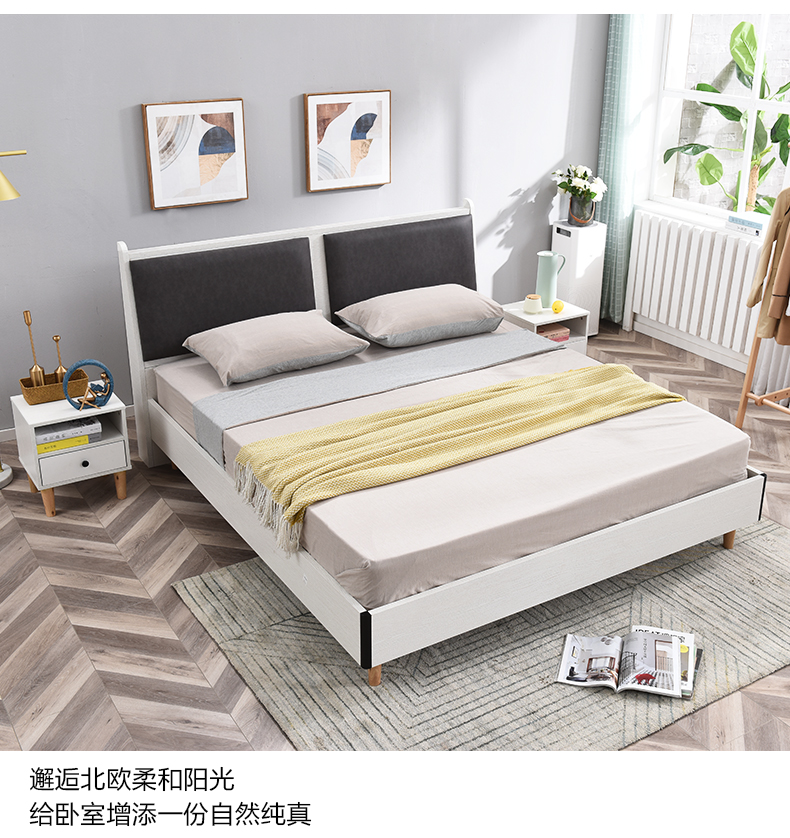 商品名称:杜沃 床 汉尼斯实木床双人床1.5M北欧风婚床1.8米卧室家具 浪漫白 1.8米