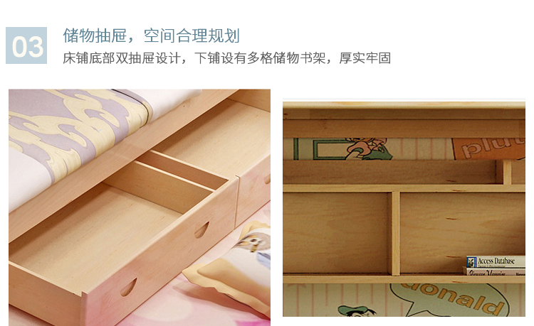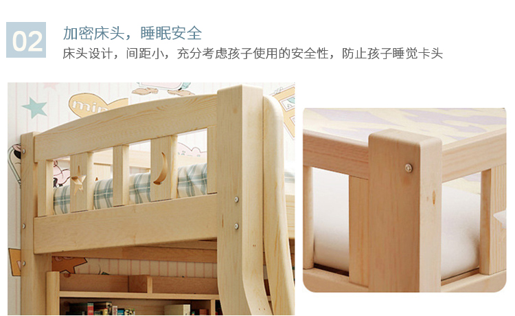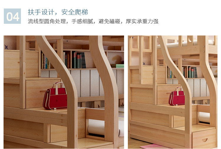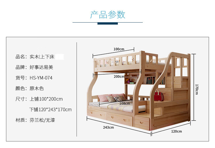 商品名称:好事达 易美 074 定制松木上下床 小户型简约子母床 高低实木梯柜床1.2米 书架+床抽+梯柜