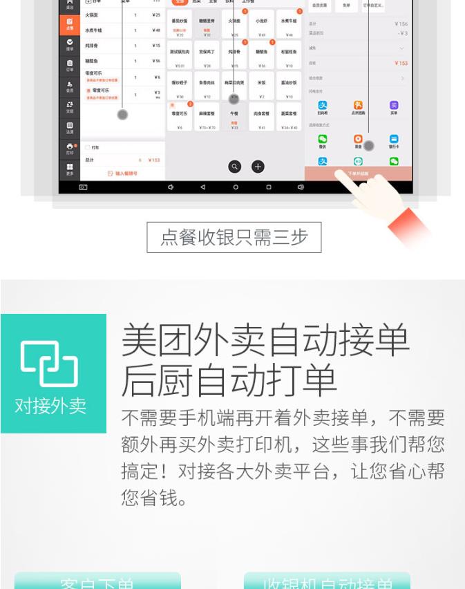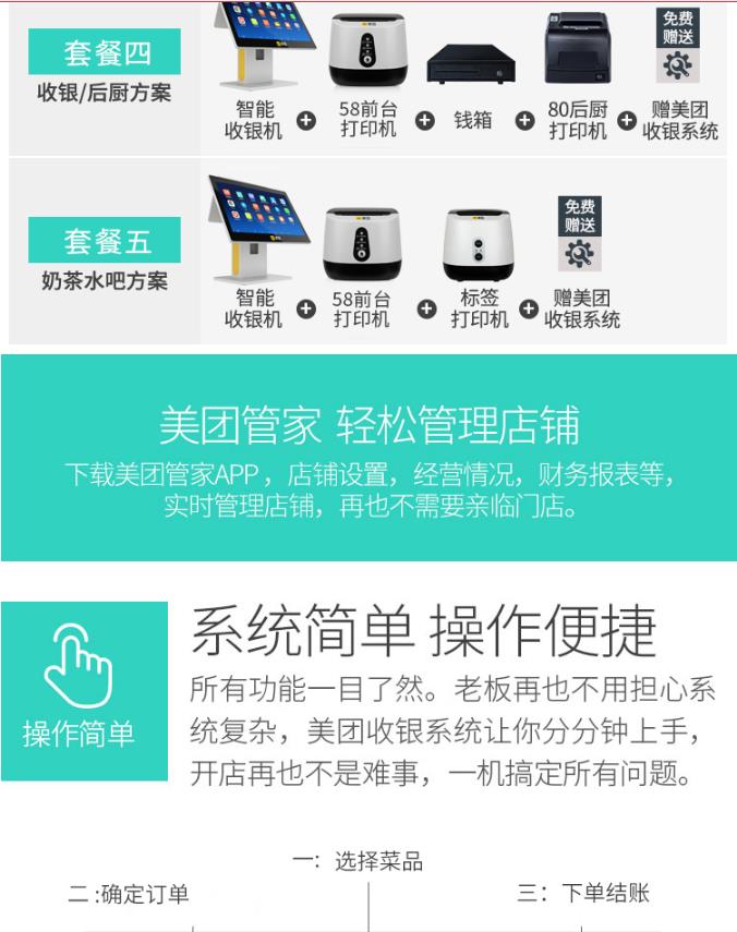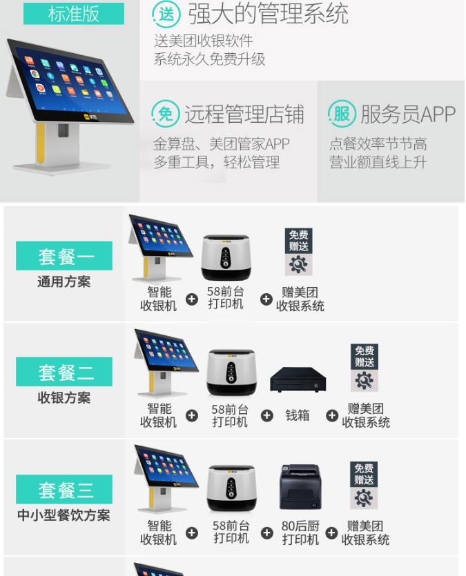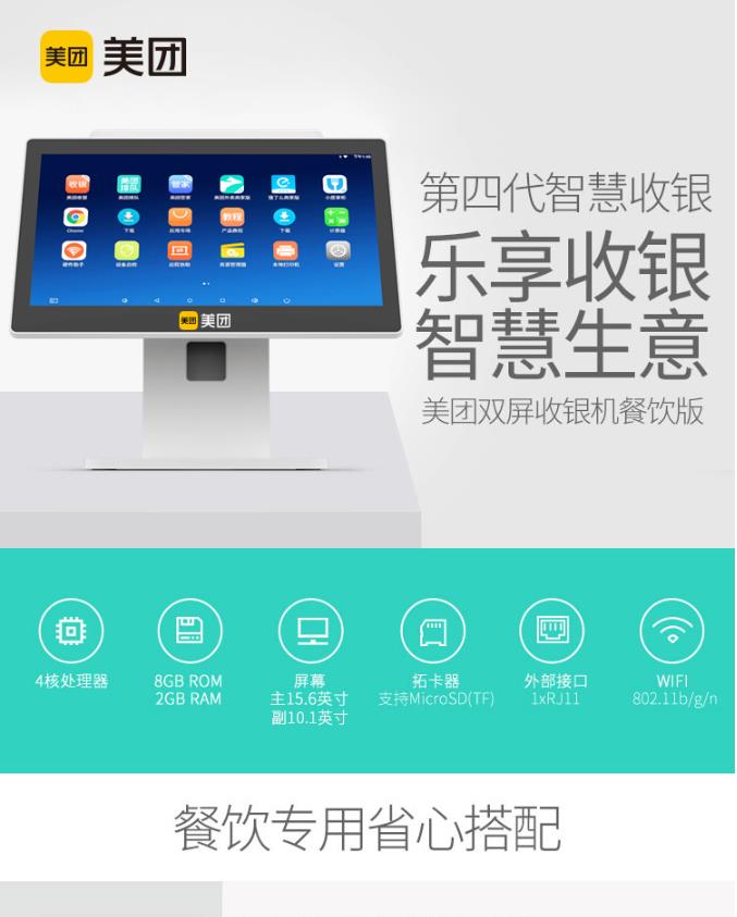 商品名称:美团点评 双屏收银机 套餐一 15.6英寸+11.6英寸 电容屏 4核/2G内存/8G闪存 智能一体机+58前台打印机