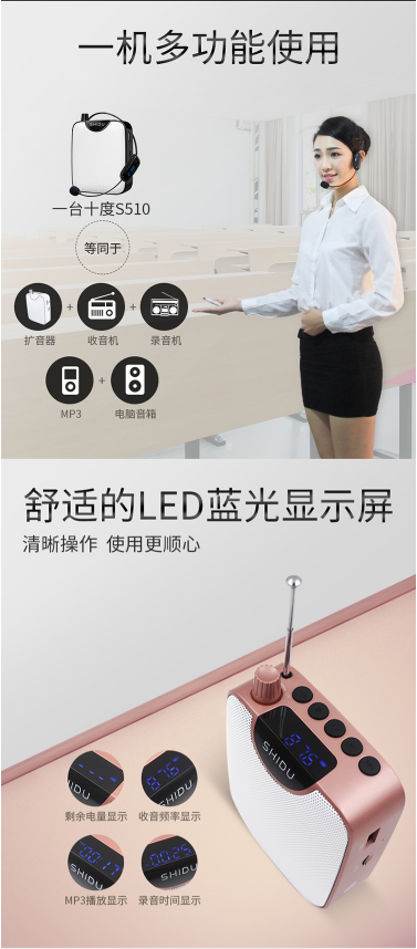商品名称:十度 SHIDU SD-S510无线扩音器小蜜蜂喇叭大功率教师教学导游促销会议专用话筒便携扩音机音响经典黑