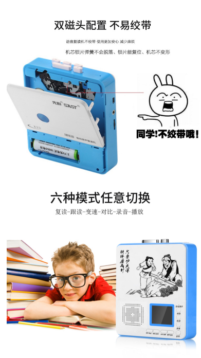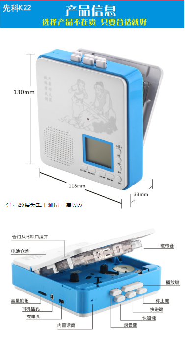 商品名称:先科 SAST K22英语复读学习机磁带机录音机五级复读变速随身听充电