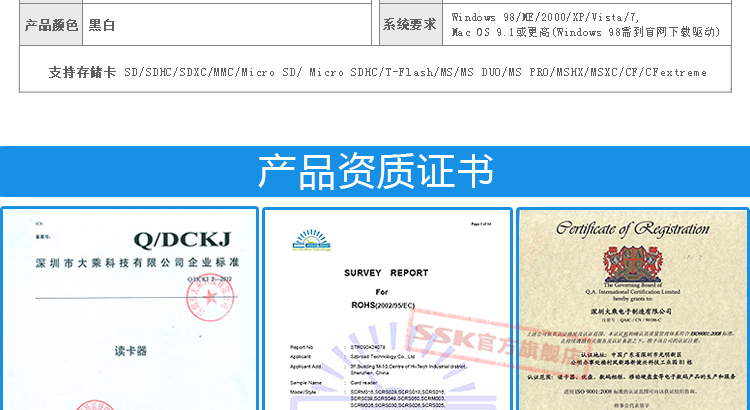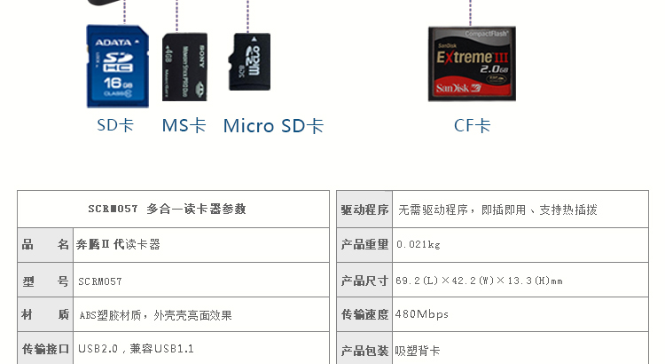 商品名称:飚王 SSK SCRM057奔腾II多合一读卡器黑白