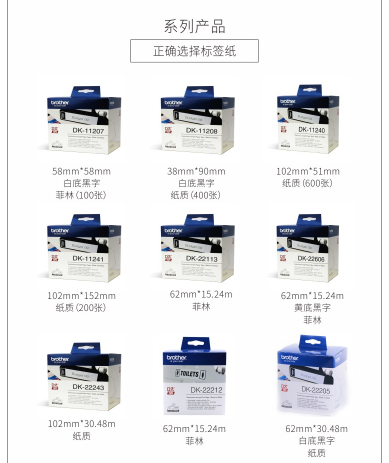 商品名称:BROTHER DK-11208 标签机标签纸白底黑字 38*90MM 纸质400张