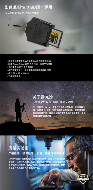 商品名称:雷克沙 LEXAR 专业版 XQD 2.0 USB 3.0 读卡器