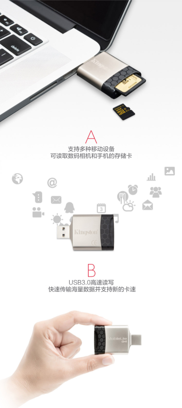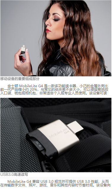 商品名称:金士顿 KINGSTON USB 3.0 MOBILELITE G4 多功能读卡器 FCR-MLG4