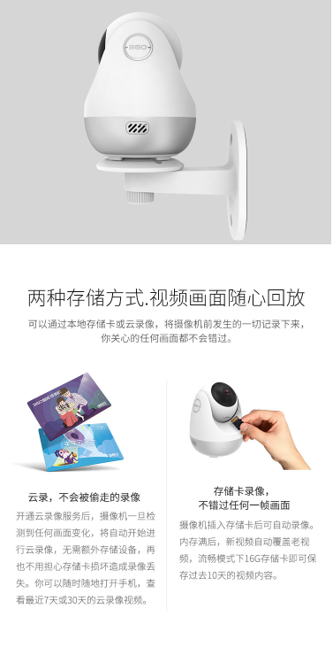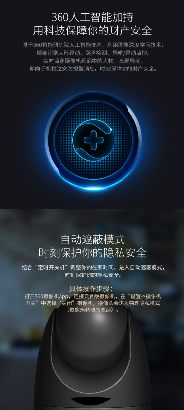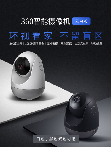 商品名称:360 智能摄像机 云台版 1080P 网络WIFI家用监控高清摄像头 红外夜视 双向通话 360 度旋转监控 黑色