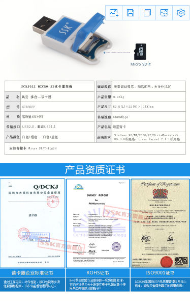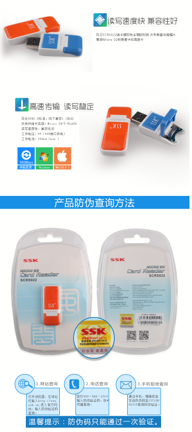 商品名称:飚王 SSK SCRS022 风云TF读卡器 USB2.0