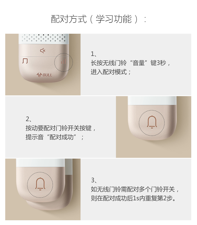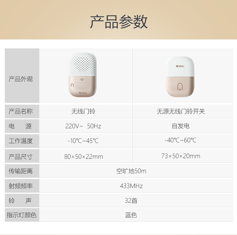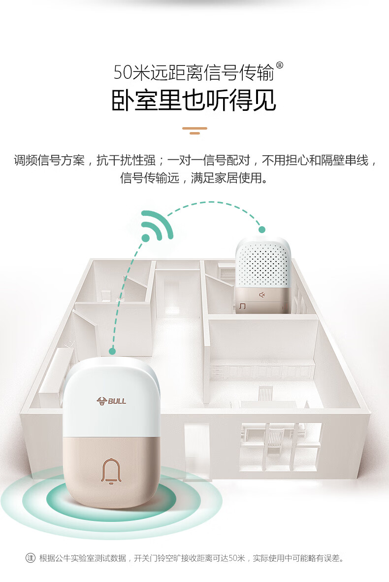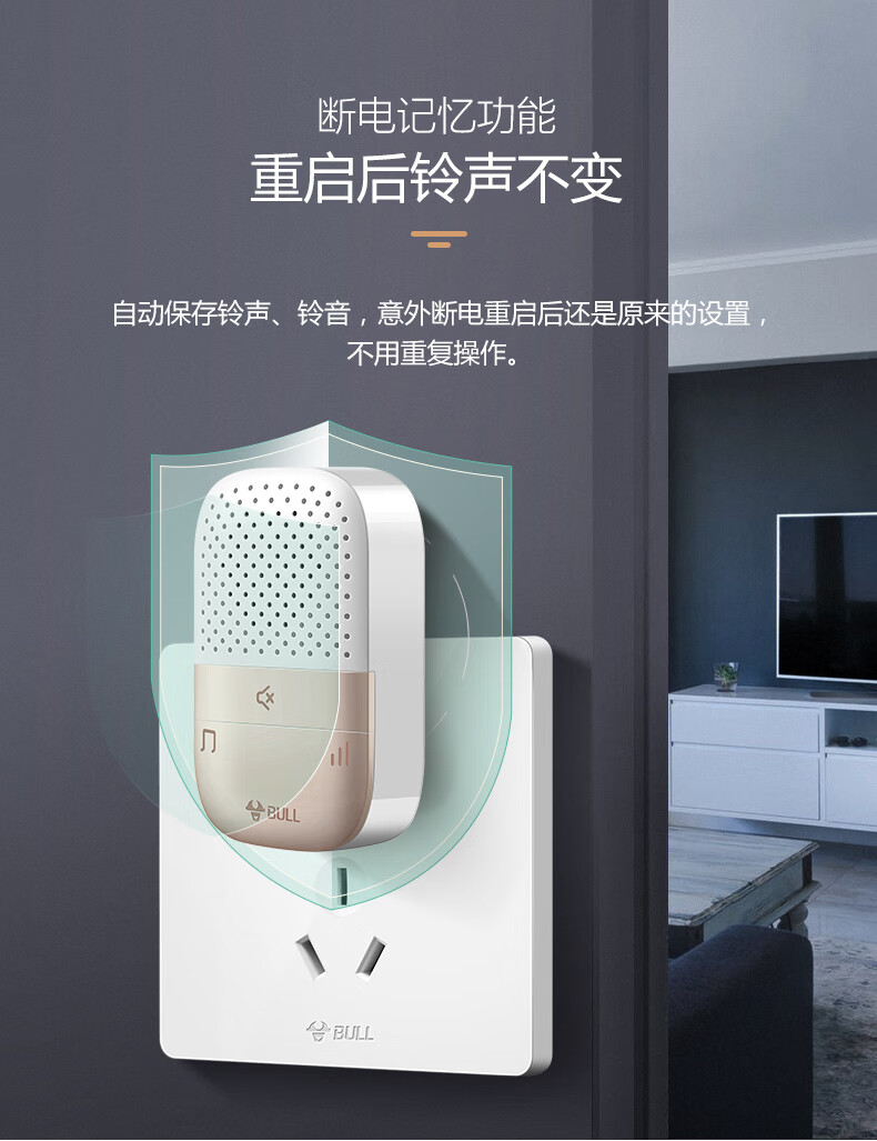 商品名称:公牛 BULL GWM03 无线门铃 带音乐开关面板呼叫器 一拖一(一个按钮一个门铃)