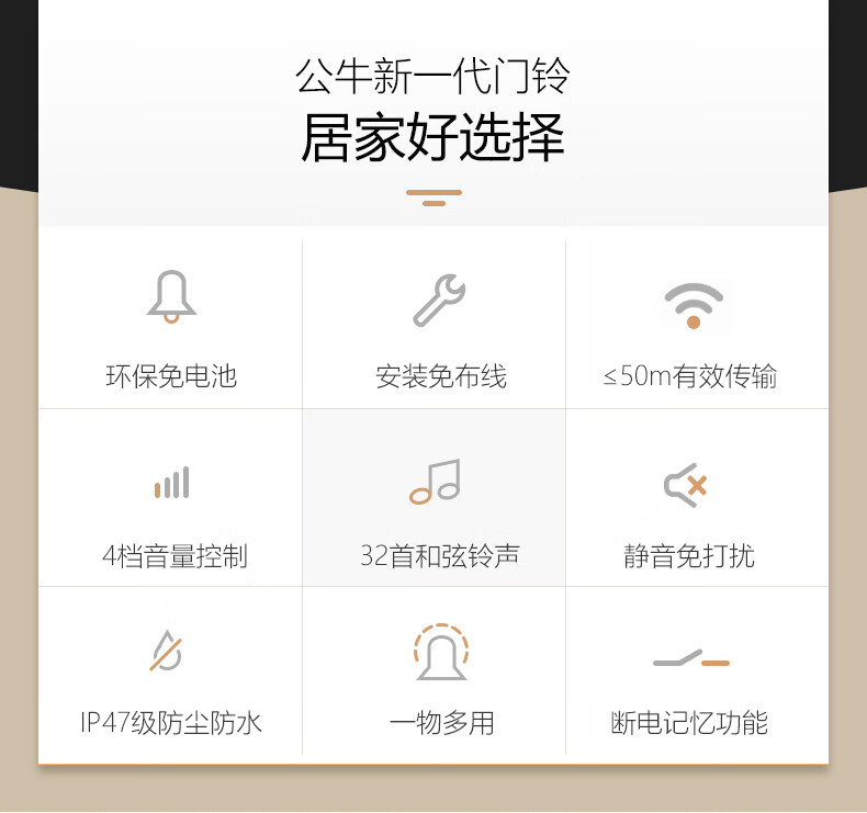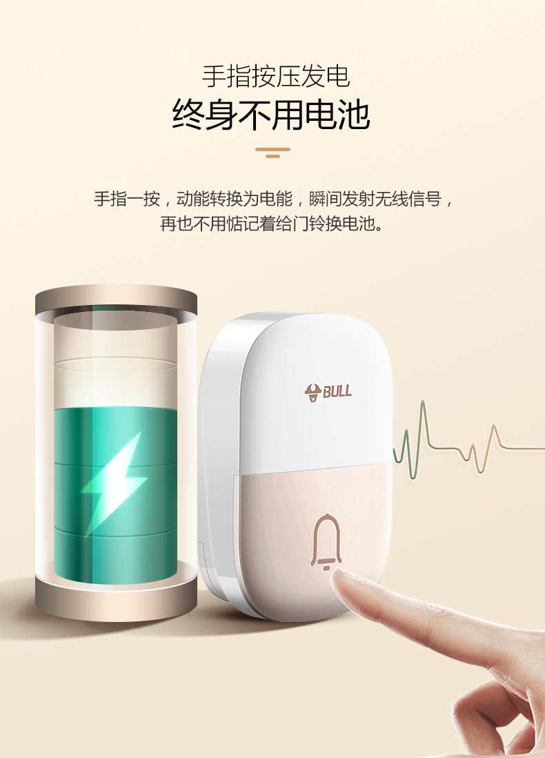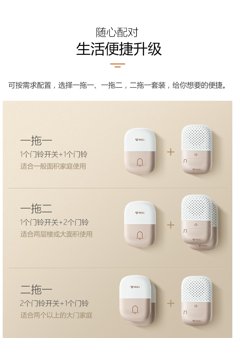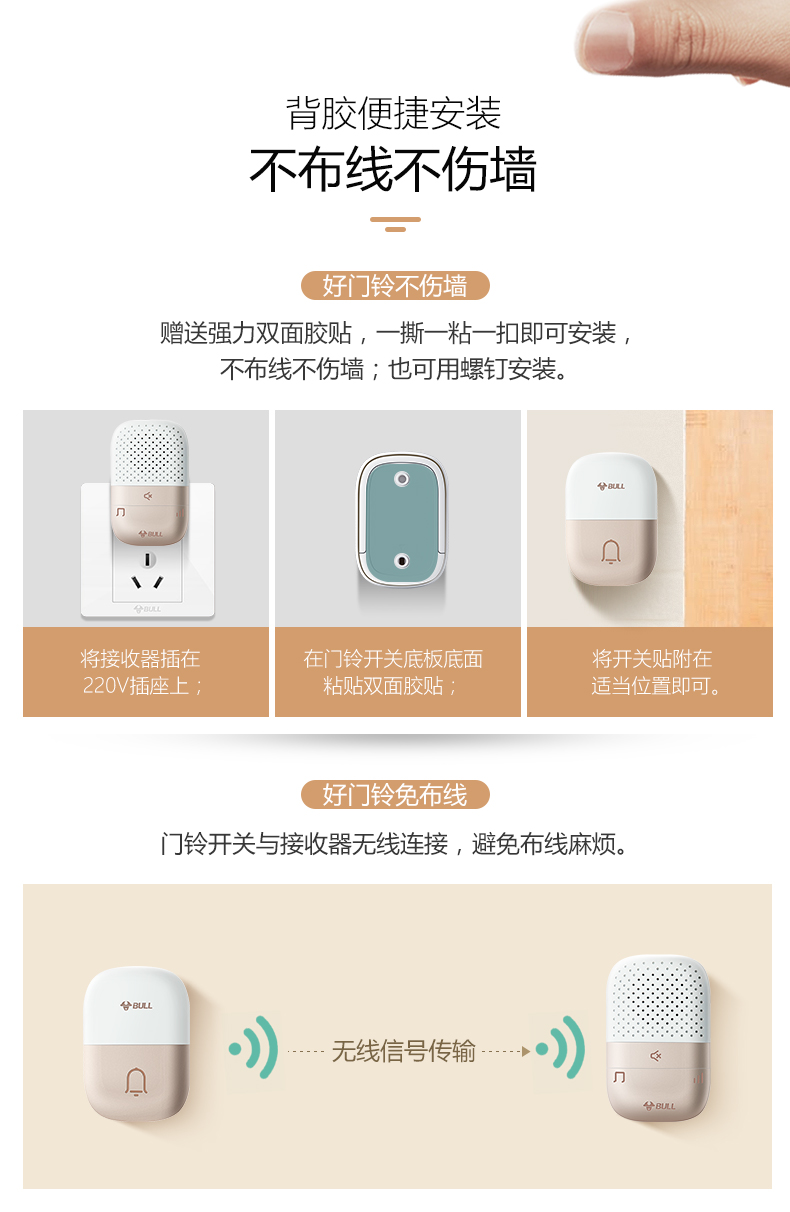 商品名称:公牛 BULL GWM03 无线门铃 带音乐开关面板呼叫器 一拖一(一个按钮一个门铃)