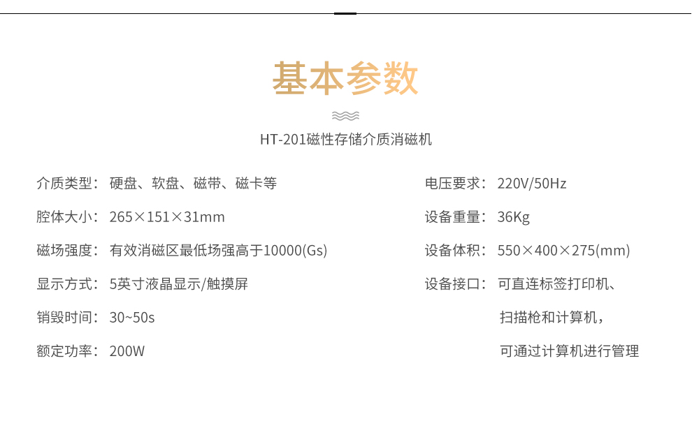 商品名称:航天润普 HT-201 磁性存储介质消磁机