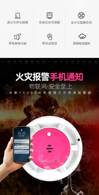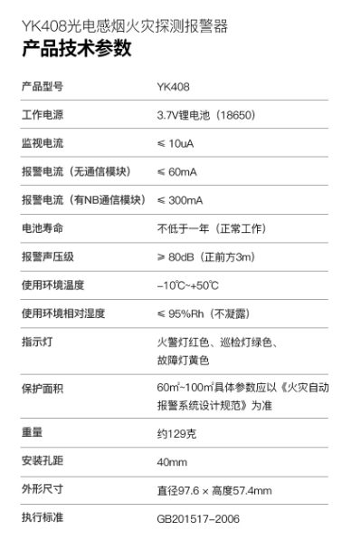 商品名称:永康 YK-408 烟雾报警器 带独立流量卡 家用探测烟杆火灾感应 商用 独立烟感