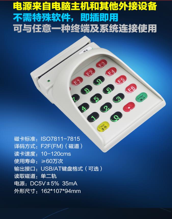 商品名称:睿者易通 WITEASY F802 磁条磁卡读卡器会员卡 刷卡器 白色 带键盘密码保护盖刷卡器 双向读取磁条