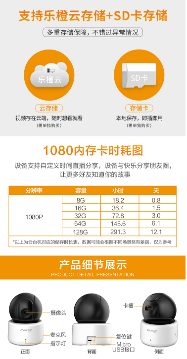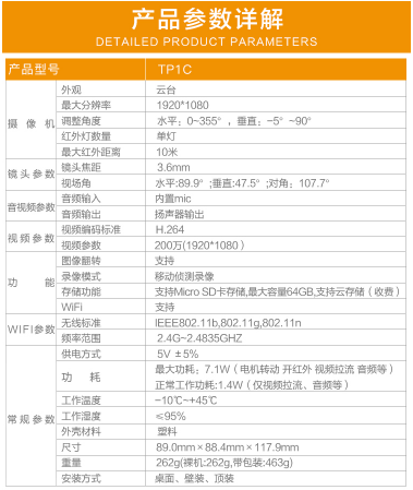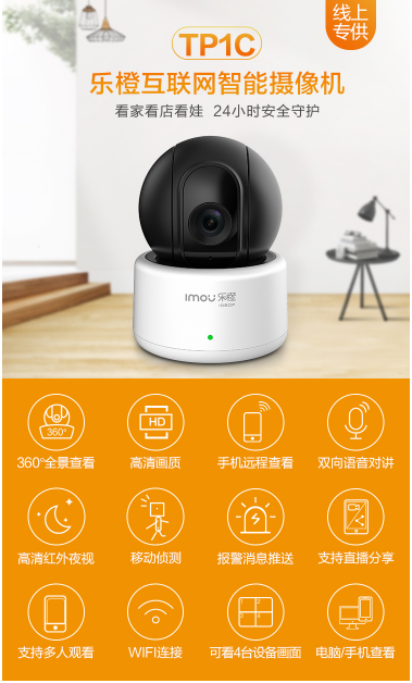 商品名称:乐橙 LECHANGE TP1C 智能网络监控摄像头 1080P 360度全景