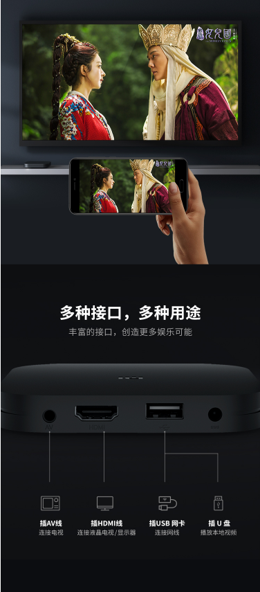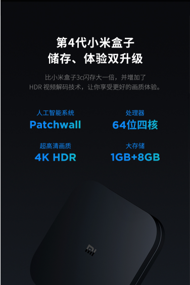 商品名称:小米 MI 小米 MI 盒子4C 智能网络电视机顶盒 4K电视 H.265硬解 安卓网络盒子 高清网络播放器 HDR 黑色
