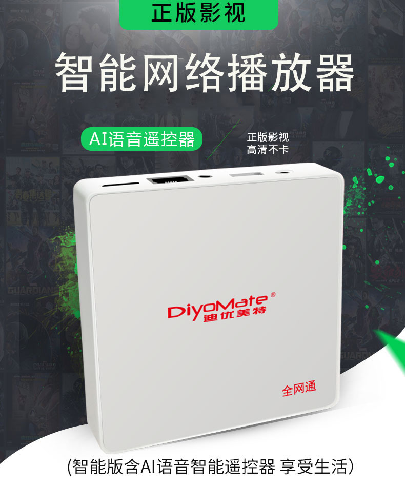 迪优美特 DIYOMATE X800网络机顶盒 4K电视盒子2+16G送会员 智能语音遥控 无线WIFI高清播放器