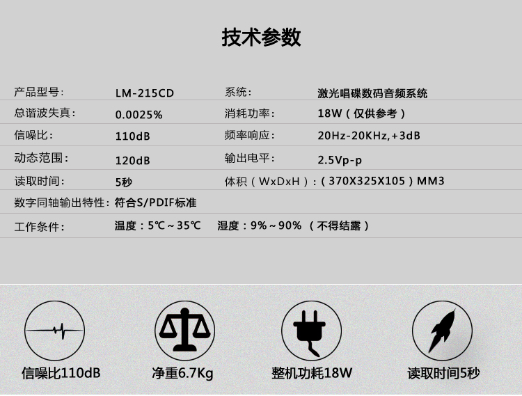 商品名称:丽磁 LM-215CD音响HI-FI高保真电子管CD播放机银色