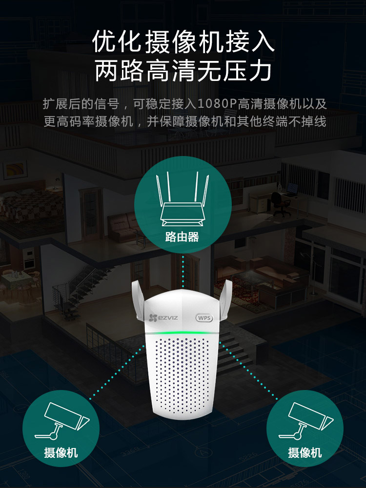 商品名称:萤石 EZVIZW2C 监控级无线中继器 WIFI放大器 增强无线信号