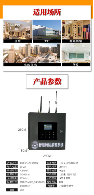 商品名称:驰冀康 CHIJIKANG CJK-T4 无线联网消防系统(1主机+10个烟感报警器)
