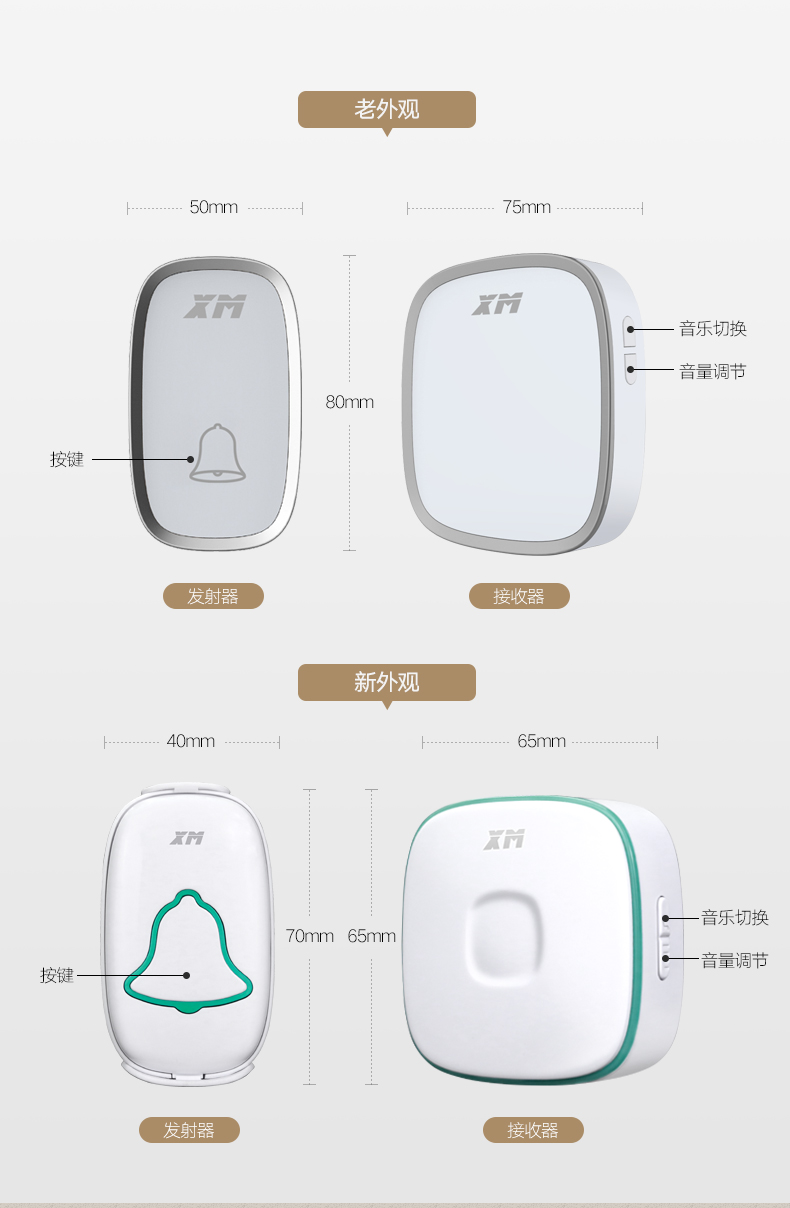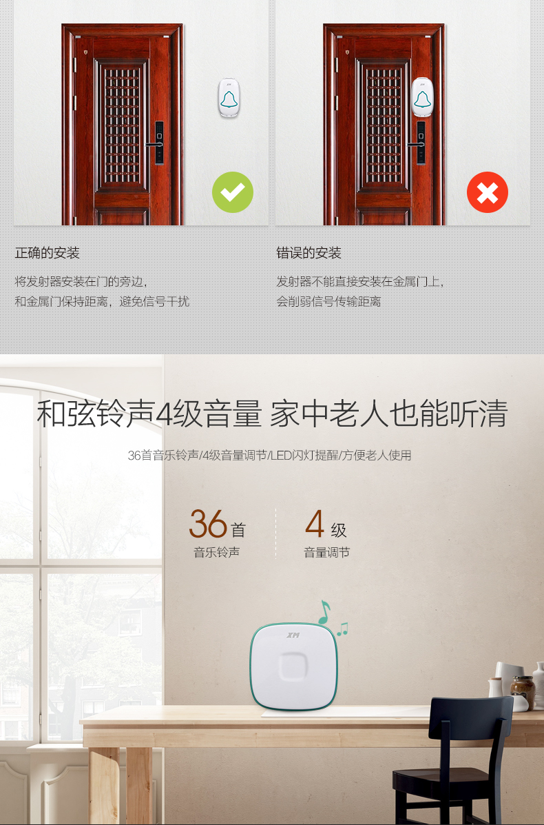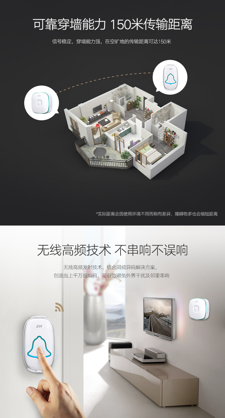 雄迈 XM 遥控门铃无线家用一拖一穿墙用电池电子门铃老人呼叫器远程智能