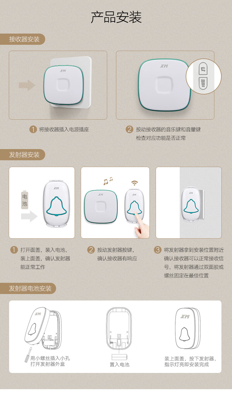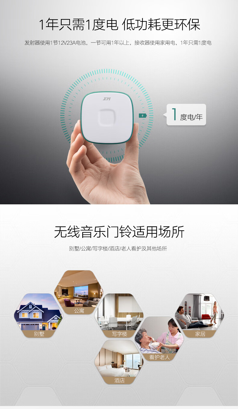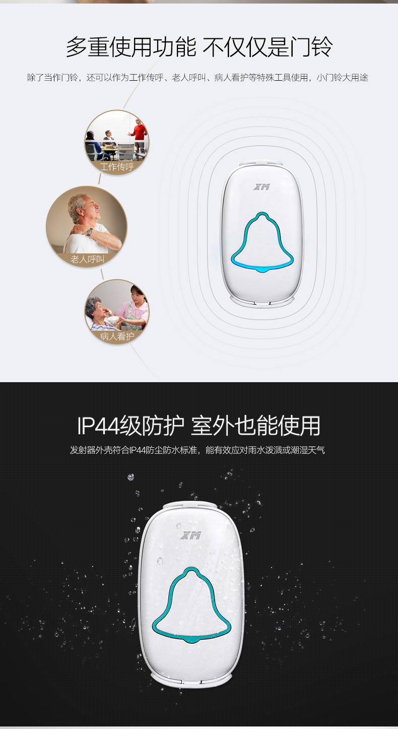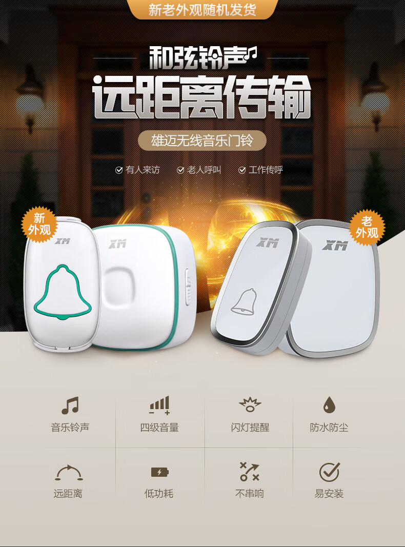 商品名称:雄迈 XM 遥控门铃无线家用一拖一穿墙用电池电子门铃老人呼叫器远程智能