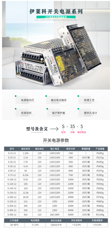 商品名称:伊莱科 ELECALL S-400-12 开关电源