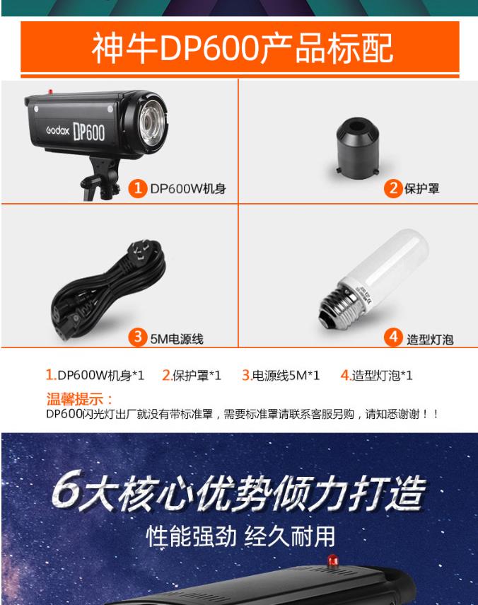 商品名称:神牛 DP600 摄影补光灯影室闪光灯 600W影棚柔光拍照灯