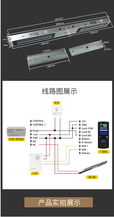 商品名称:固尚 GSON GSON-S628DA 电磁锁 双开门 280公斤 12V 带门磁