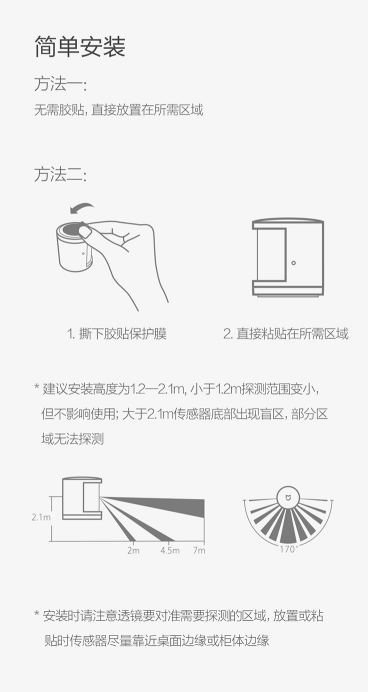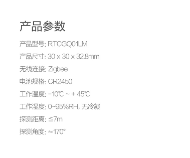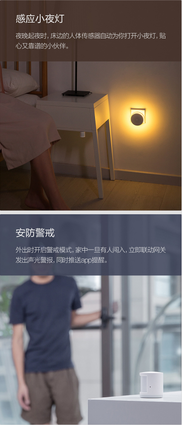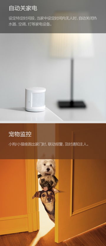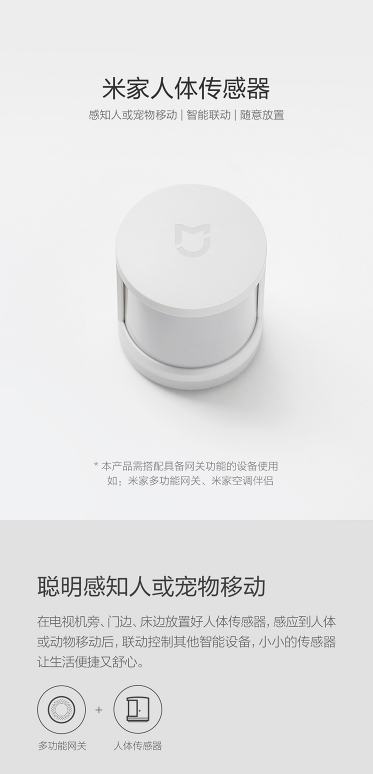 商品名称:米家 MIJIA 米家人体传感器小米智能家居套装智能监测人或宠物移动警戒模式移动侦测报警