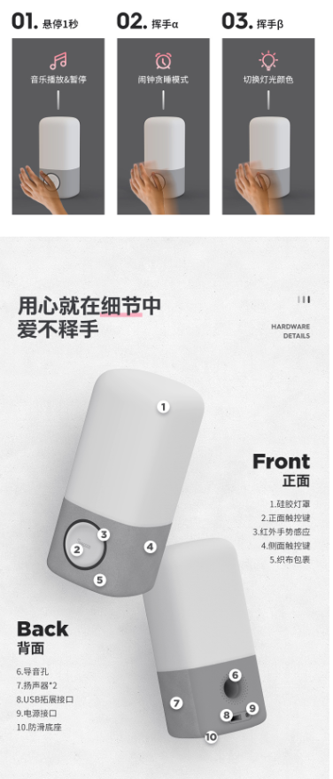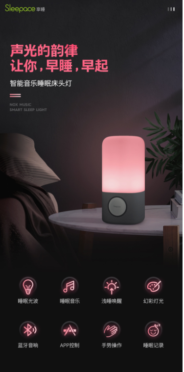 商品名称:SLEEPACE 享睡NOX音乐助眠小夜灯智能唤醒床头灯音乐台灯智能灯泡智能台灯创颖礼品