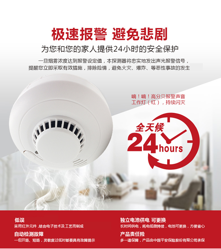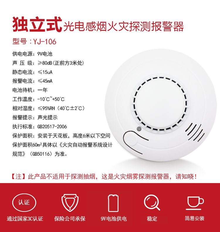 商品名称:岡祈 GANGQI YJ-106 烟雾报警器独立烟感探测器无线烟雾感应器家用防火浓烟警报消防火灾烟感报警器