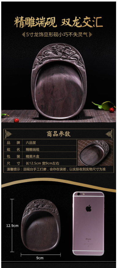 商品名称:六品堂 肇庆端砚砚台(带盖木盒原石)