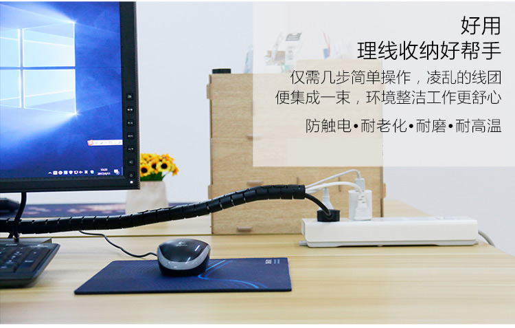 索厉 SUOLI 电线理线器束线管 黑色 (直径28MM长/3米/带理线夹/SL-DX30)