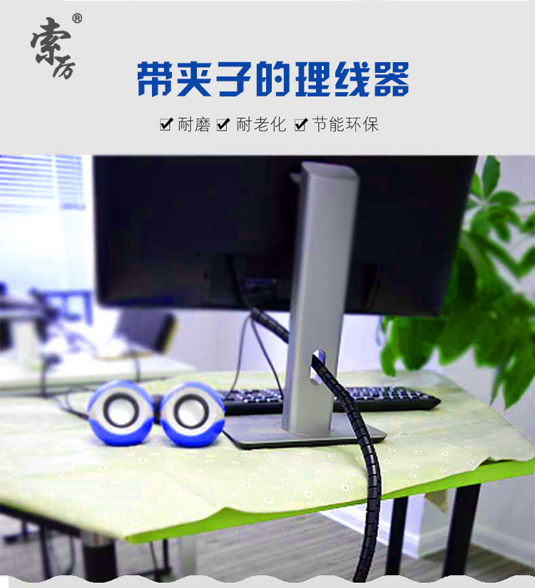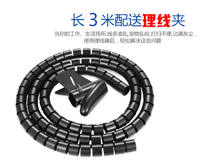 商品名称:索厉 SUOLI 电线理线器束线管 黑色 (直径28MM长/3米/带理线夹/SL-DX30)