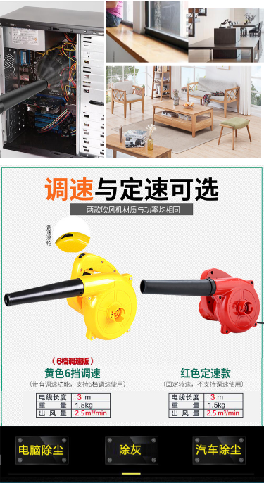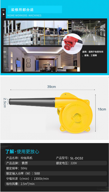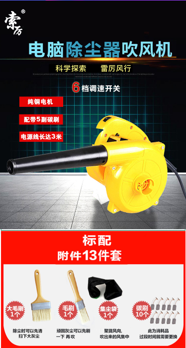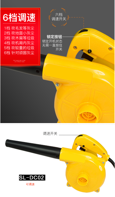 商品名称:索厉 SUOLISL-DC02电脑除尘器清洁吹风机 黄色3米长电源线/工业级施工吹吸尘机/吹尘鼓风机/ 可调速