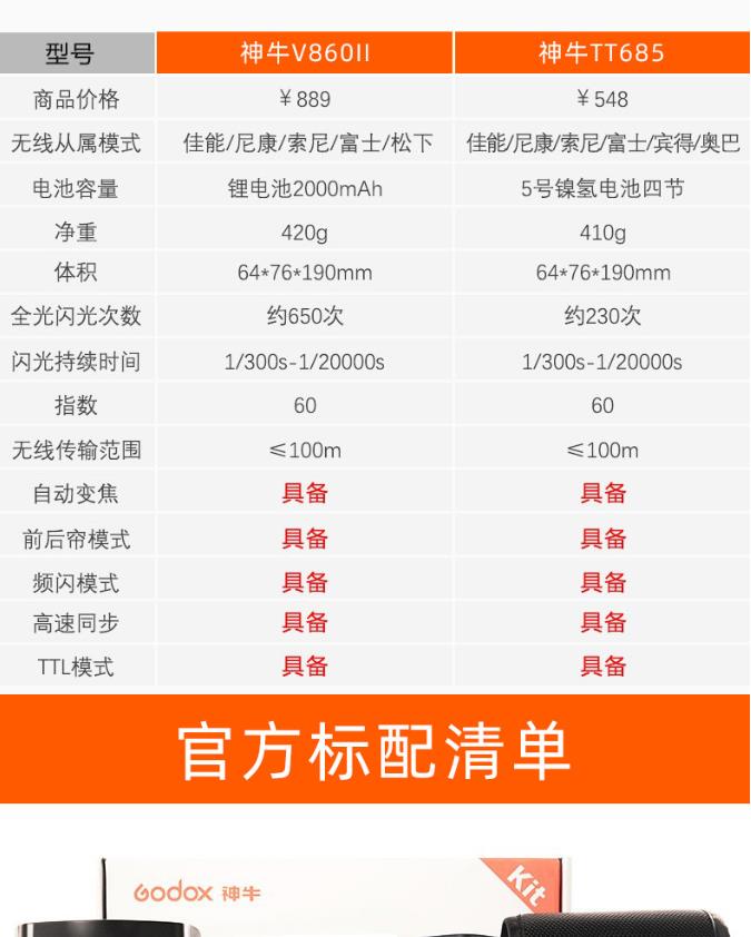 商品名称:神牛 V860II-C 闪光灯2.4G无线引闪外拍灯内置引闪器 佳能TTL高速锂电机顶灯