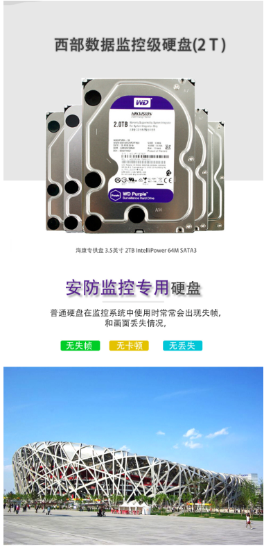 商品名称:海康威视 HIKVISION WD40PURX 监控硬盘 2TB