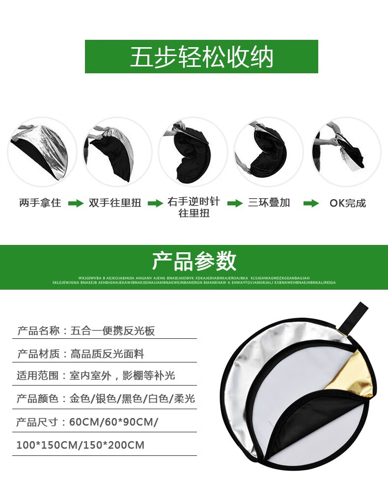 商品名称:神牛 GODOX 五合一反光板 80CM