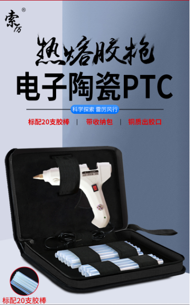 商品名称:索厉 热熔胶枪 10-60W胶棒 11MM 适用工艺维修(带开关/标配20根白色胶棒/带收纳包/SLRQ60-B)