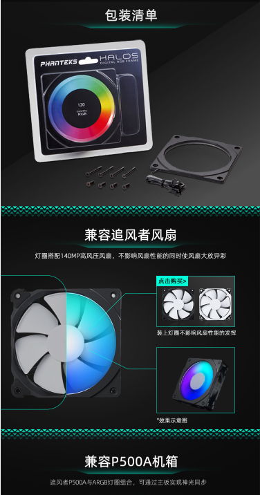 商品名称:追风者 PHANTEKS D-RGB 圣环14公分 数位可编码幻彩流光风扇光圈 5V 兼容14CM风扇/可托付主板同步控制