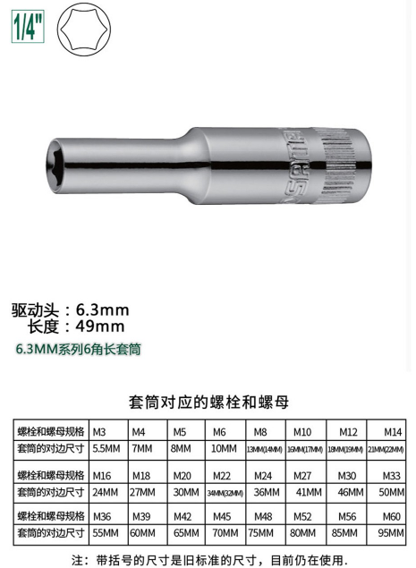 鹰之印 加长套筒子小飞套筒1/4"镜面小六角套筒头81408