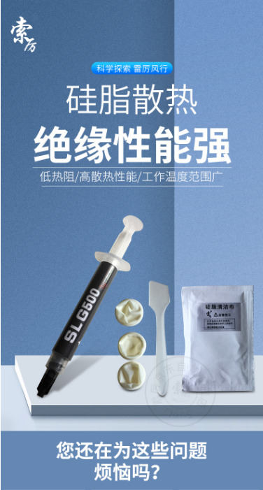 商品名称:索厉 SUOLI 碳纳米型导热硅脂(散热硅脂/显卡散热膏/台式机CPU笔记本硅胶/配刮刀/3G装/SLG500)