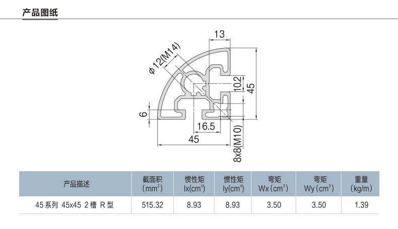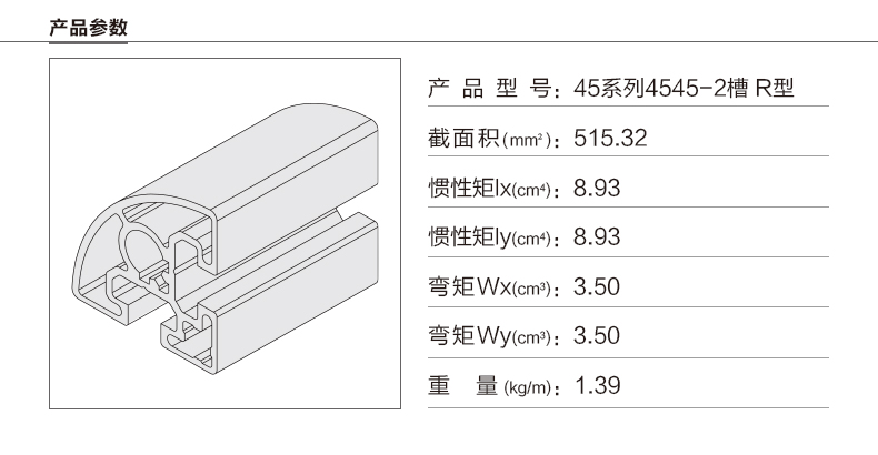商品名称:爱安特 A&T 45系列 AA45-4545-2-R 工业铝型材 45×45型材 2槽 R型