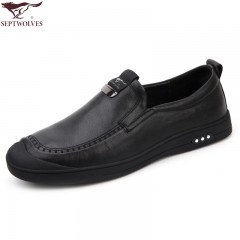 七匹狼 新品头层牛皮真皮皮革日常休闲套脚软底男士皮鞋子