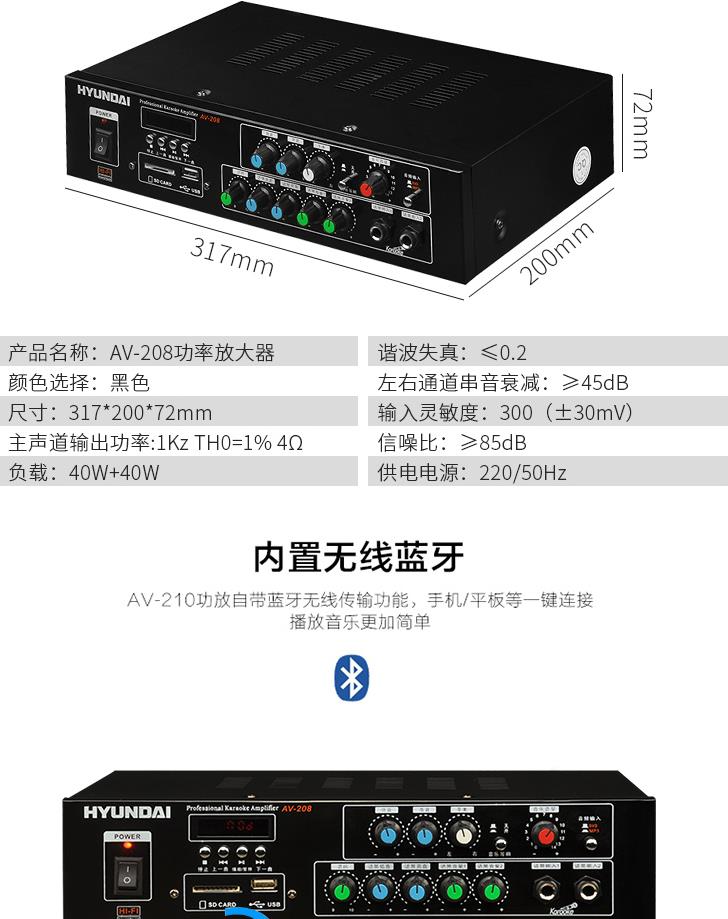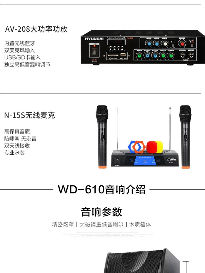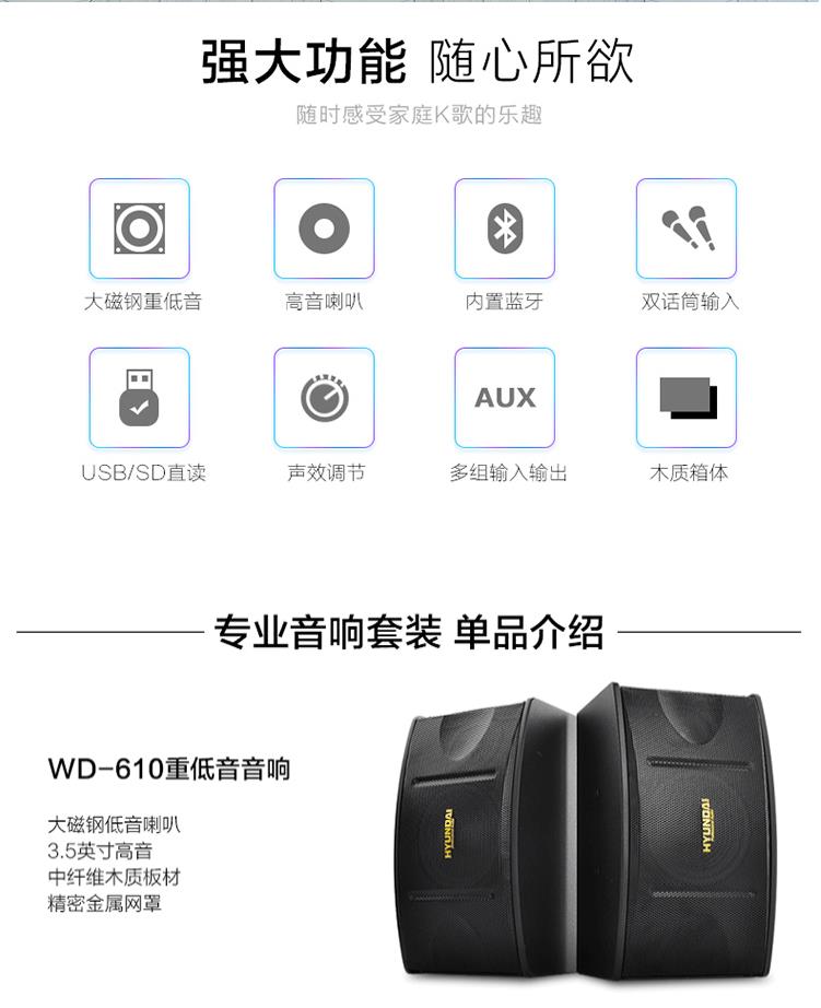 商品名称:现代 HYUNDAI 610 KTV家庭影院音响组合套装 家用专业蓝牙功放卡拉OK会议 点歌机 伴侣