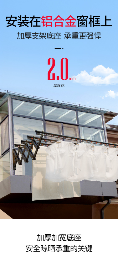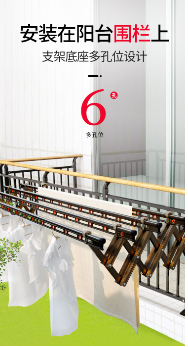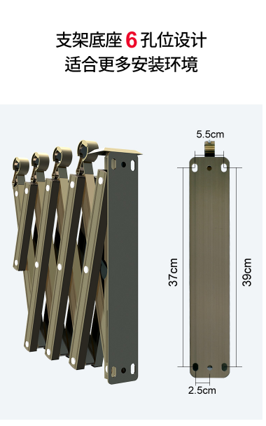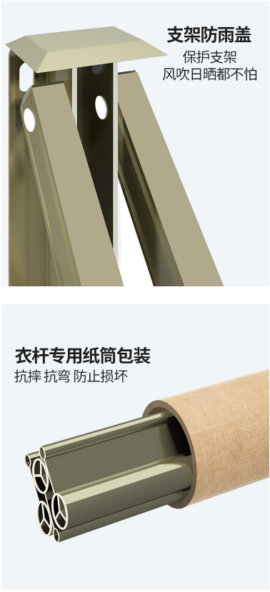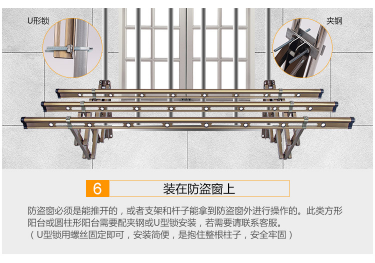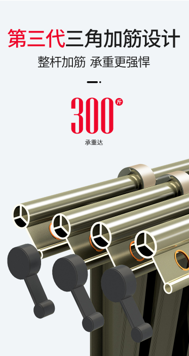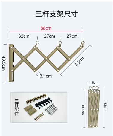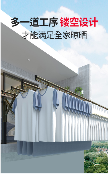 商品名称:南极人 阳台外伸缩晾衣架 加筋镂空 3.0米 香槟色三杆