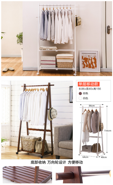 商品名称:家逸 落地衣帽架实木松木三角挂衣架简约晾衣架可移动衣架 白色