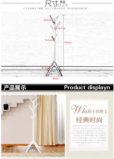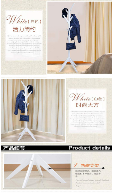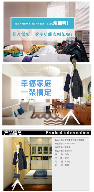 商品名称:雅客集 落地衣帽架 实木挂衣架 WN-15007白色