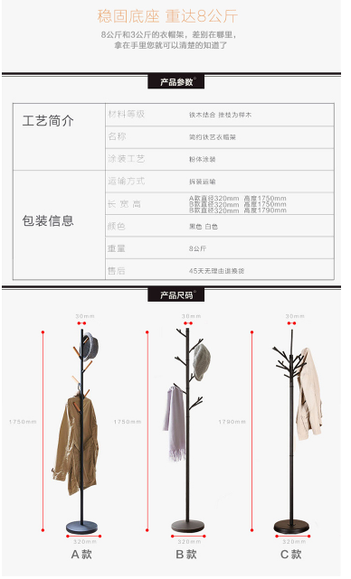 商品名称:越茂 YMJ-NJY09-BK 铁艺家用卧室衣帽架 落地欧式简约挂衣架 简易衣服架子 黑色
