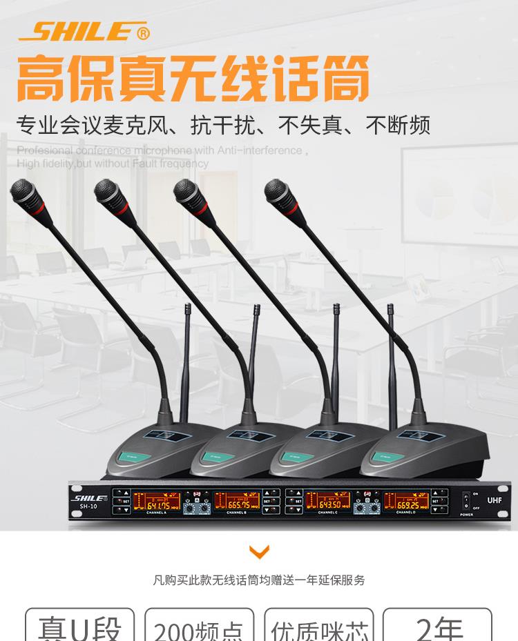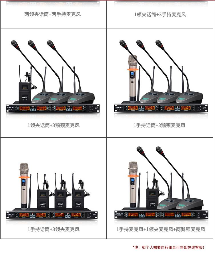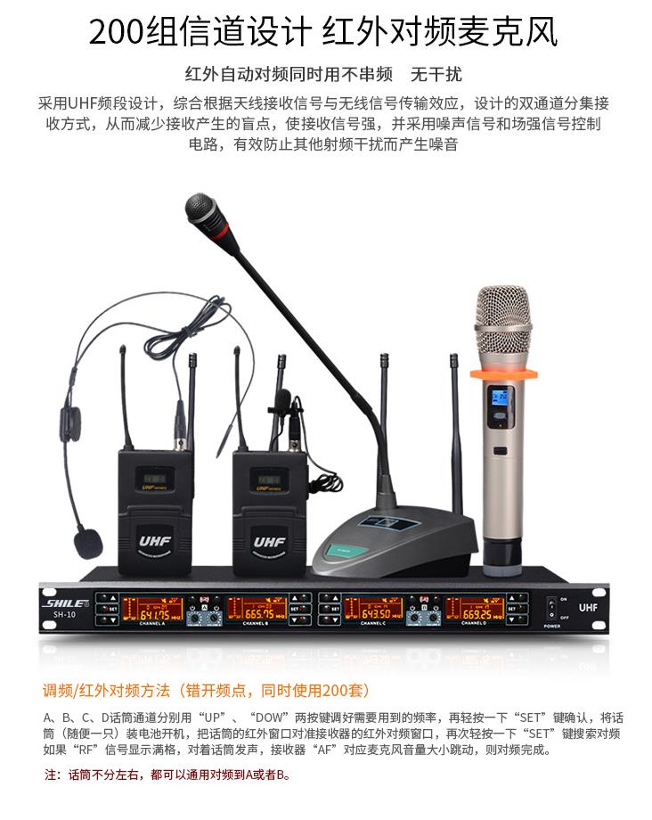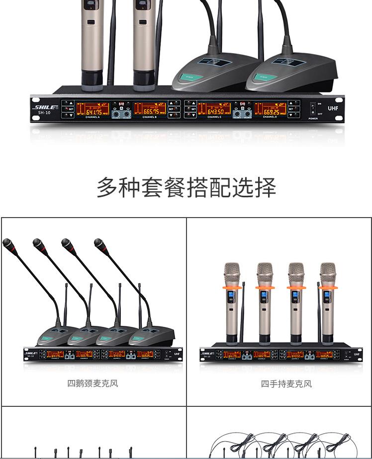 商品名称:狮乐 SHILE SH10U段无线话筒一拖四会议鹅颈手持头戴耳麦领夹培训舞台麦克风套装主机+1手持+1领夹+2鹅颈