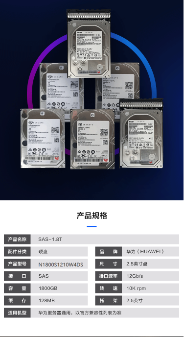 商品名称:华为 HUAWEI 1.8TB SAS 硬盘 2.5寸托架
